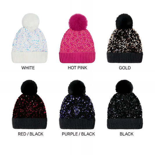 🔥Last Day 50% OFF - Sequin Fur Pom Beanie for Women