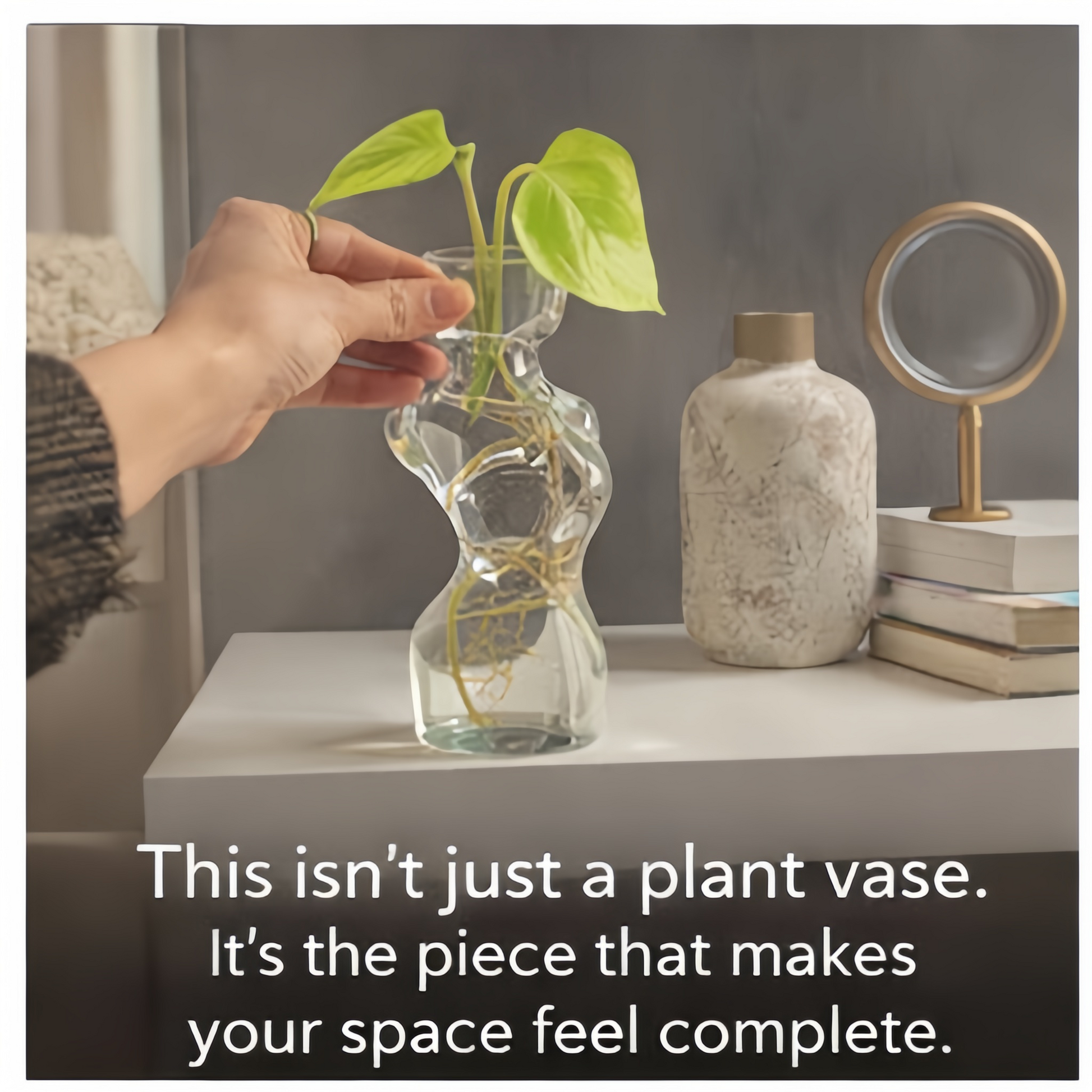 This sculptural glass planter transforms simple plant cuttings into a statement of beauty and calm.