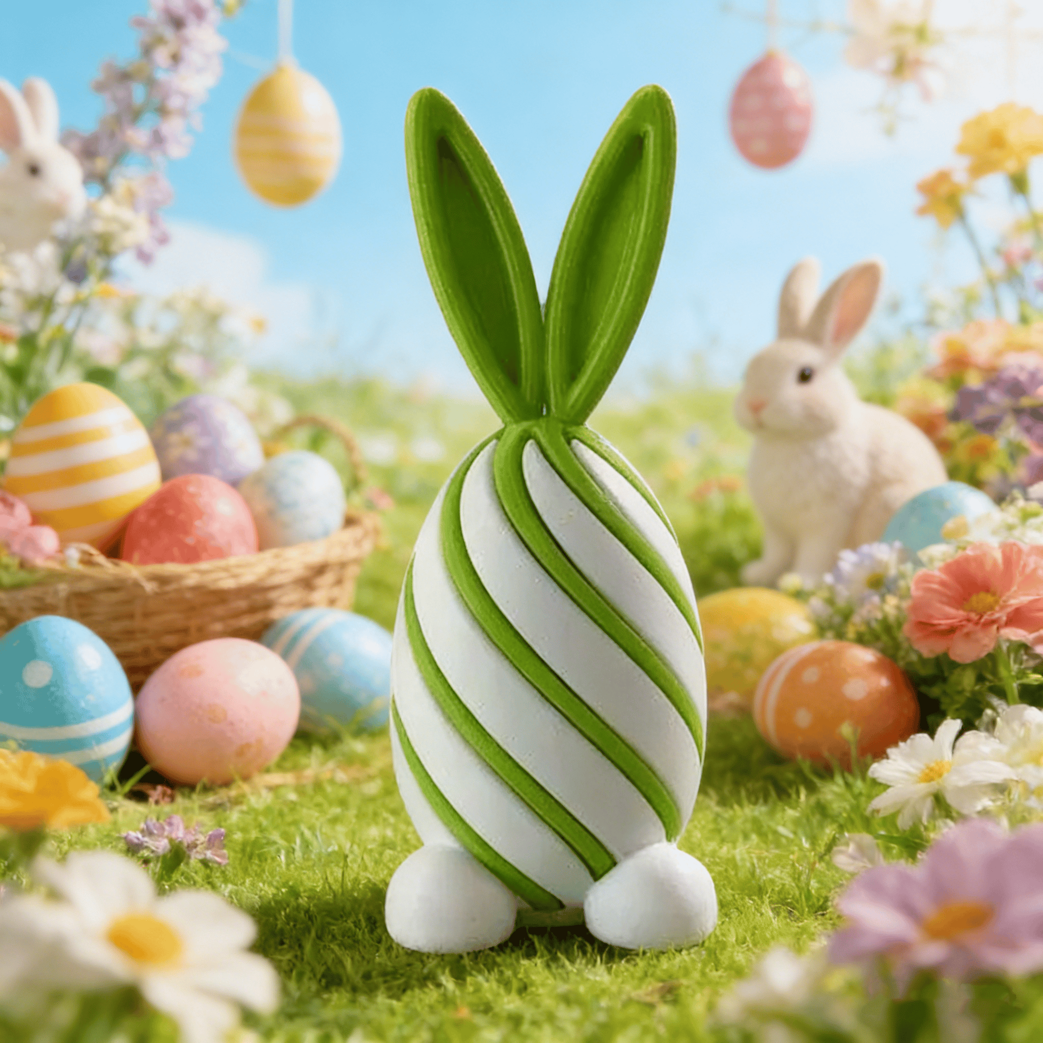 - Sweet Bunny Egg Shape: Long ears 🐰 paired with a vibrant, spiral egg body 🥚—lively and festive. 🎊