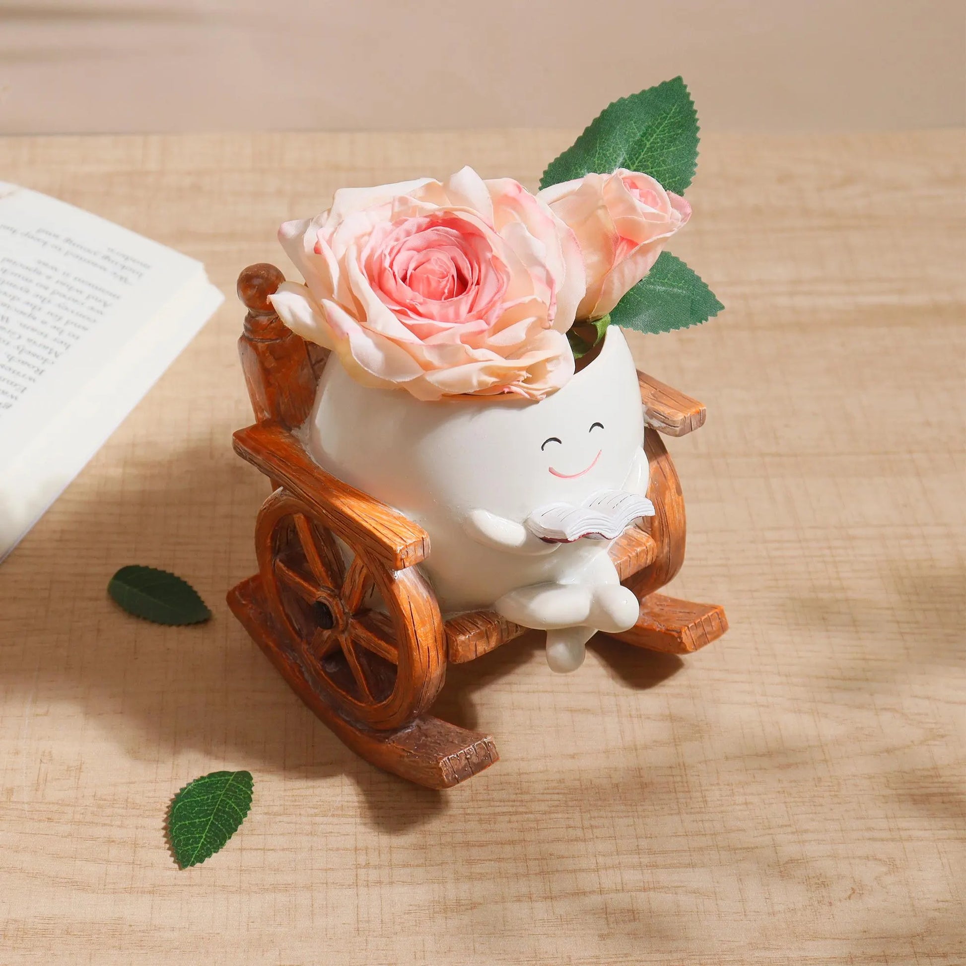 - Unique Design: Each planter features an egg-shaped "character" with a sweet, smiling face, seated in a realistic rocking chair.