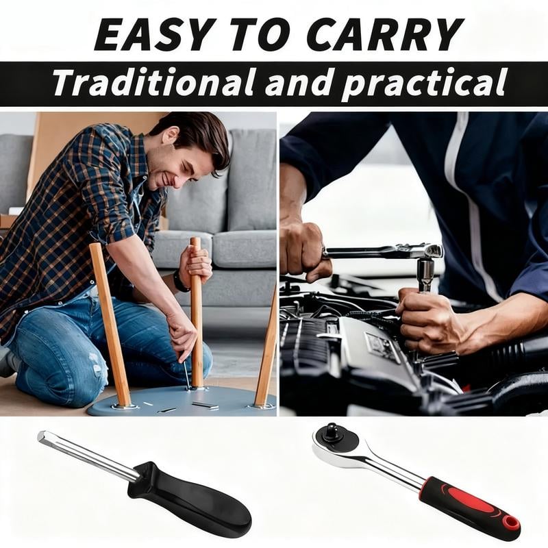 Tired of searching for the right wrench or losing small tools? This 46/53-piece socket ratchet wrench set keeps everything you need in one compact, well-organized case. From hex keys to sockets and extensions, it’s a complete kit that saves space and money—perfect for DIY lovers, car owners, and household repairs.