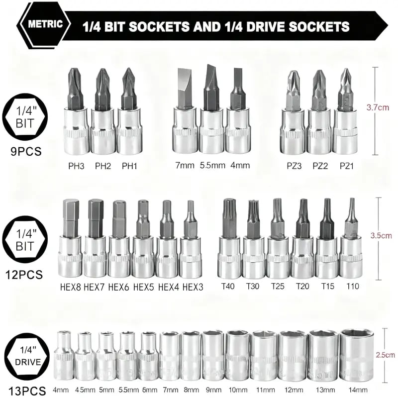 Crafted from premium chrome vanadium steel alloy, this socket set offers extraordinary hardness, toughness, and durability. Designed to handle high torque, it’s reliable for long-term use without bending or breaking like cheap alternatives.