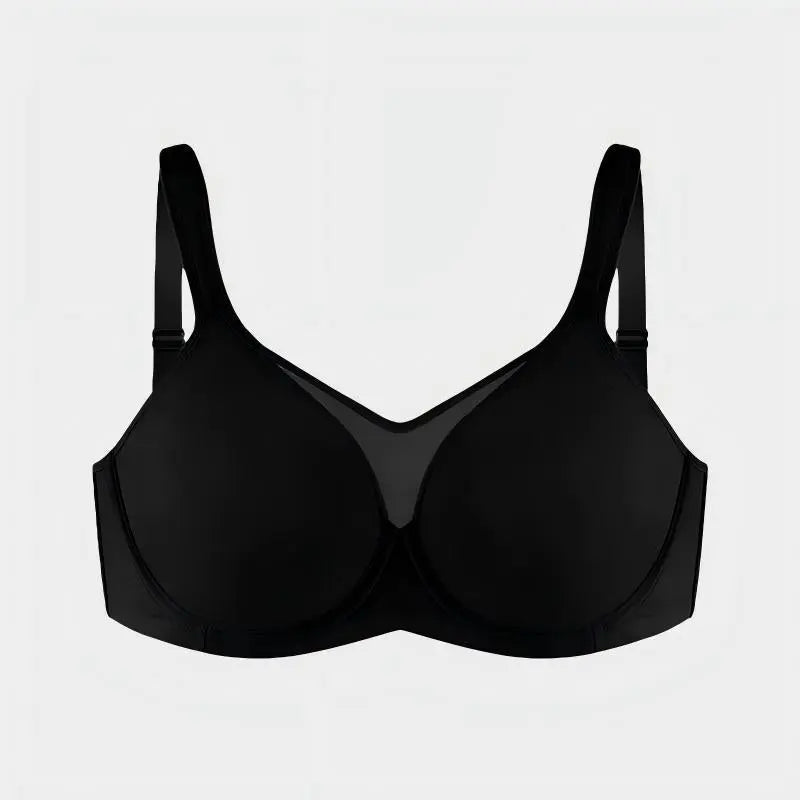 Think of how a push-up bra enhances curves by bringing the breasts front and center; our minimizer bras do the opposite.They gently spread the breast tissue for a wider, more natural shape-like softly pressing a softball to make it rounder and broader.