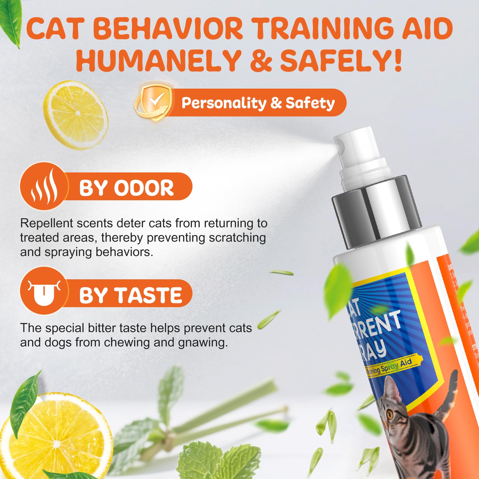 - Spray on areas you want your cat to avoid.