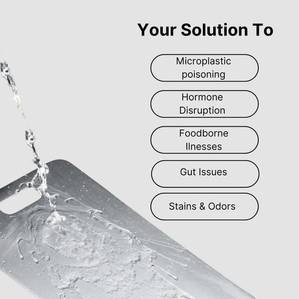Did you know a research conducted by the University of Arizona found that plastic and wooden cutting boards can harbor up to 200 times more fecal bacteria and contaminate your food with microplastics or mold?