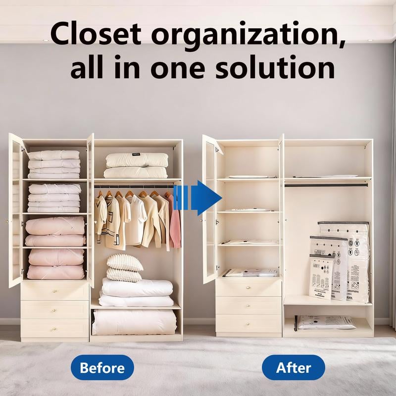 Stop struggling with overstuffed suitcases and cluttered closets. This compression system isn't just about saving space—it's about saving time, money, and stress. Pack more of what you love, travel with less baggage, and keep your storage organized all year round. Wherever you're going, take everything you need—without taking up everything you have.