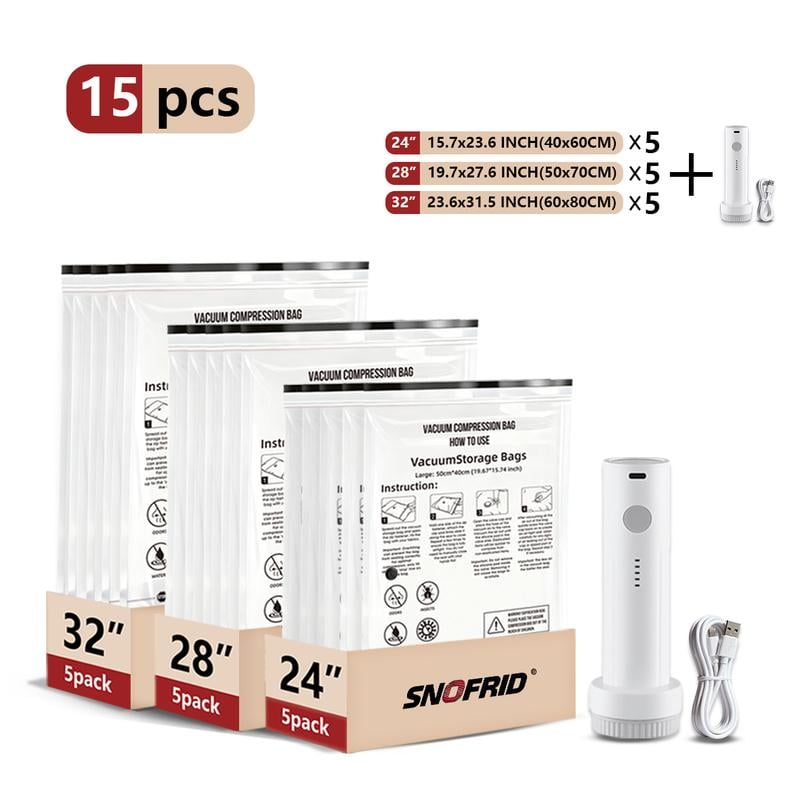 🔥 BIG SALE 49% OFF🔥Cordless Travel Vacuum Storage Compression Bag Set – 15-Pack in 3 Sizes